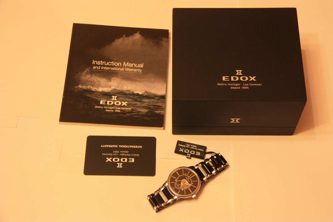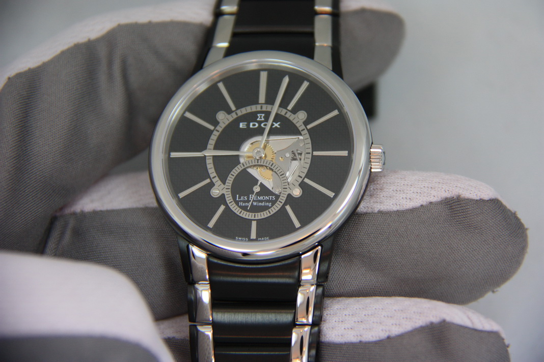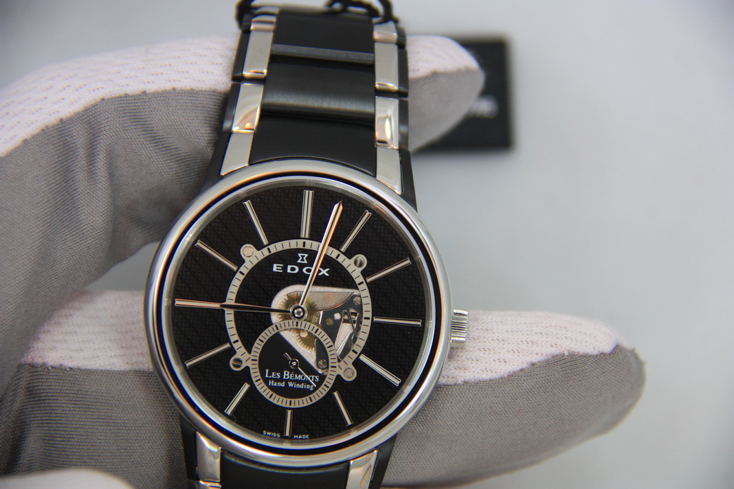 < МУЖСКИЕ > EDOX Les Bemonts Hand Winding Ultra Slim * 6,5 ММ * BLACK PVD * БРАСЛЕТ *