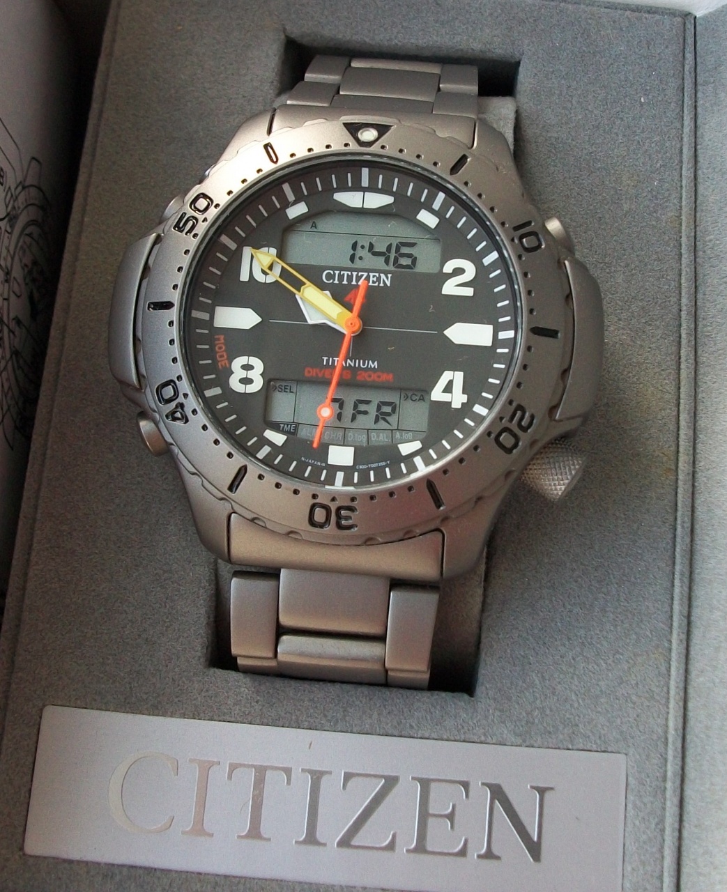 Хорошо известный, отличный титановый дайвер со всеми возможными функциями и наглядным читаемым в любых условиях циферблатом.