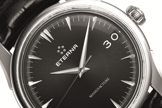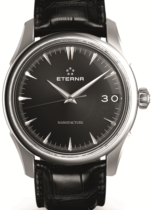 Корпус новинки круглый, изготовленный из нержавеющей стали, диаметром 41,50 мм, толщиной 9,46 мм, водонепроницаемый до 50 метров. На торце рифленой заводной головки, расположенный на 3 часах, выгравирована эмблема бренда ETERNA - стилизованное изображение пяти шариков из подшипника. Сапфировое стекло установлено на передней стороне корпуса (с антибликовым покрытием) и на его завинчивающейся задней крышке. Циферблат с накладными часовыми индексами.