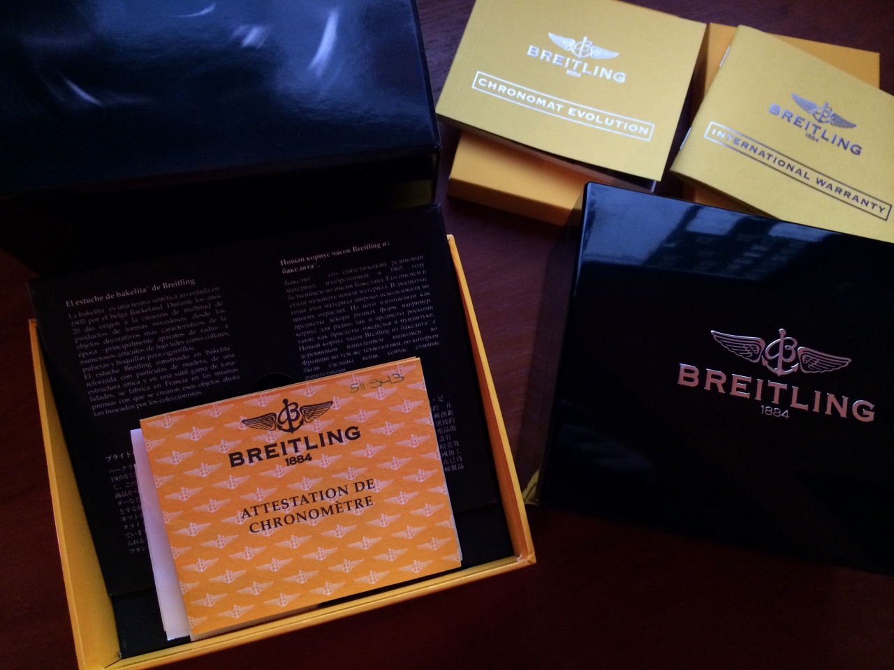 Состояние идеальное, никаких царапин. Часы как новые. Коробка со всеми документами и бумагами. Коробка и шкатулка тоже в отличном состоянии .