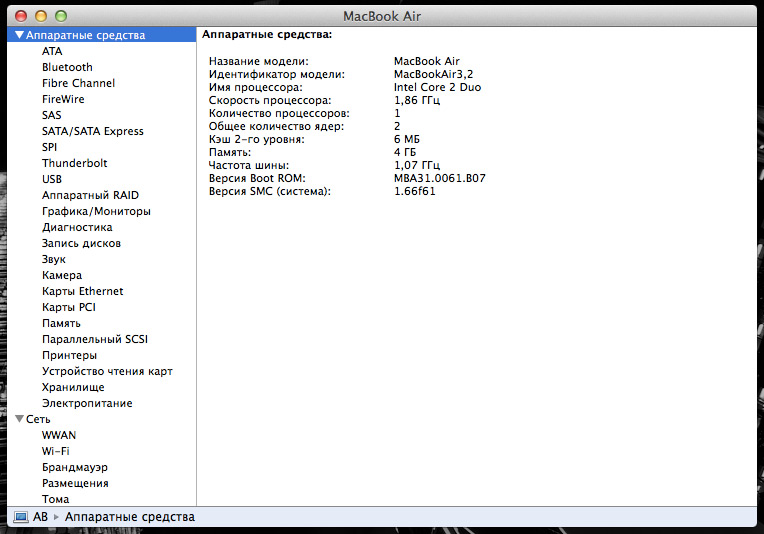 Apple MacBook Air 13" 2010 года (MBA 3.2). Куплен зимой 2011 года в официальном AppStore. Core2Duo, 4Гб оперативки, 128Гб SSD.