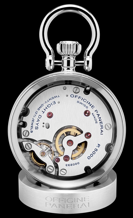 Модель оснащена мануфактурным механизмом с ручным заводом Panerai P.5000, на 21 камне, с двумя заводными барабанами, восьмидневным запасом хода, функциями индикации часов и минут (посредством соответствующих центральных стрелок).