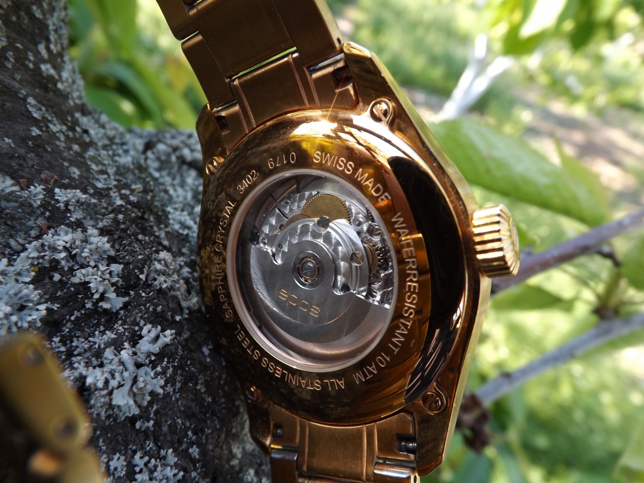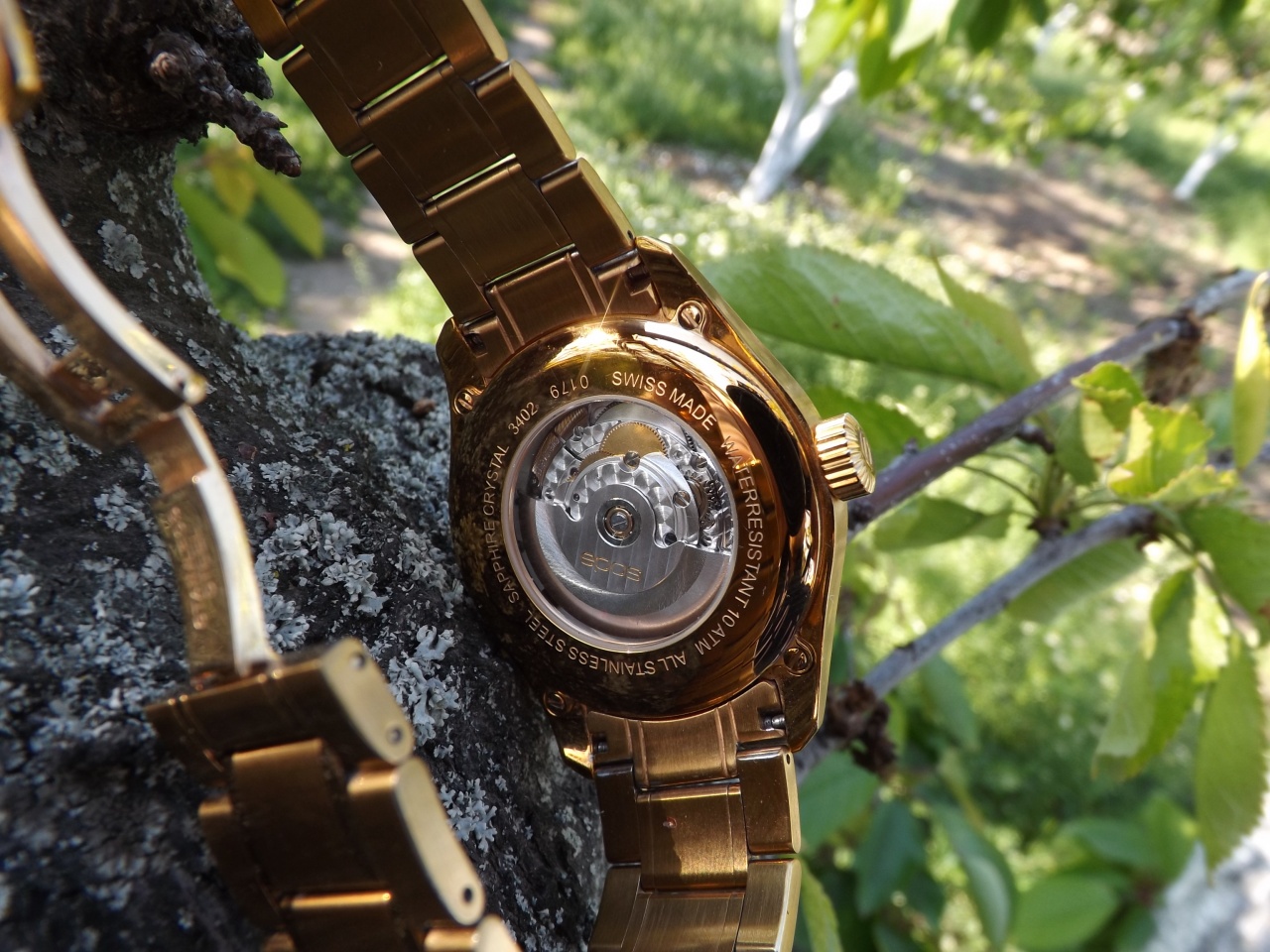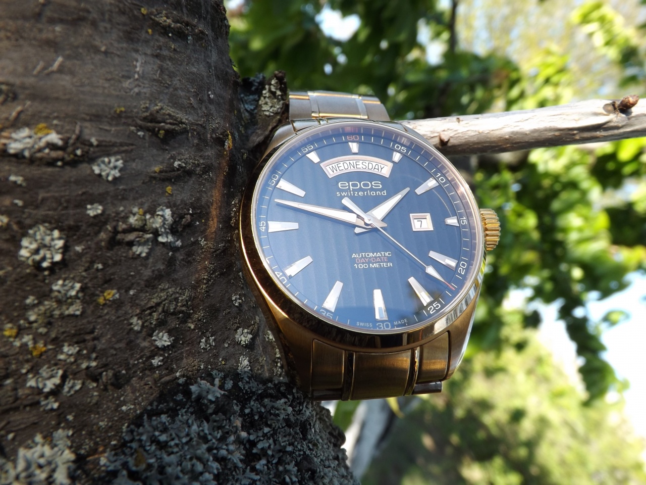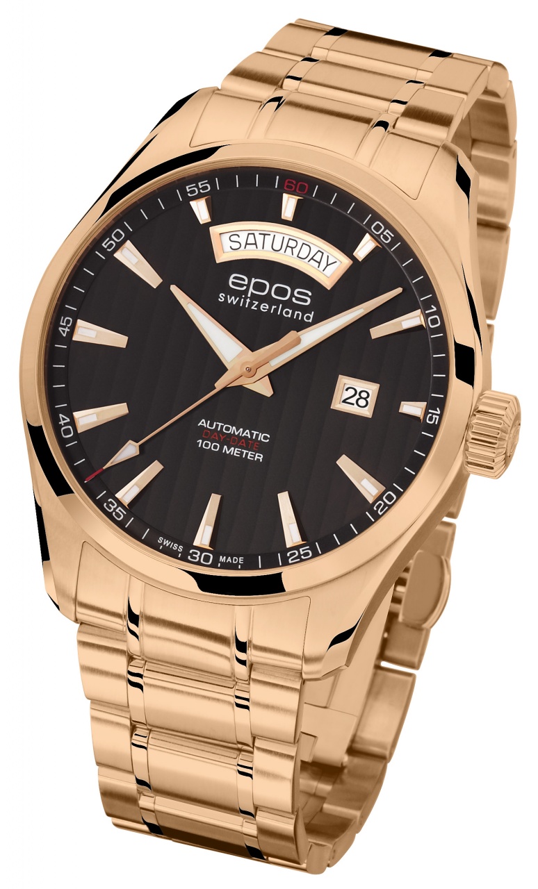 Швейцарская часовая марка Epos разработала коллекцию Passion, в которой традиционная механика представлена с четкой современной лаконичностью. Никаких художественных изысков – только хорошо читаемый циферблат и функциональность. Новинка Epos Passion обладает механизмом с автоподзаводом ETA 2834-2. Индикатор дня недели размещен в необычном месте - у отметки «12 часов», окошко даты заняло более привычное место - на «3 часа». Черный циферблат декорирован узором «женевские волны». Лаконичный образ завершает прозрачная задняя крышка.