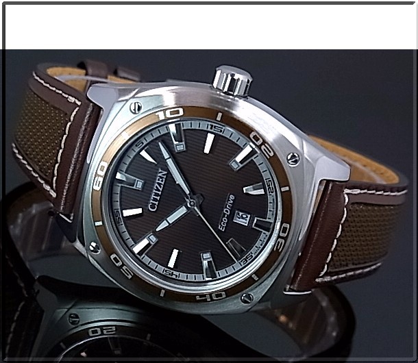 [Мужские] CITIZEN Eco-drive AW1051-09W "Подушечка" на коричневом ремешке