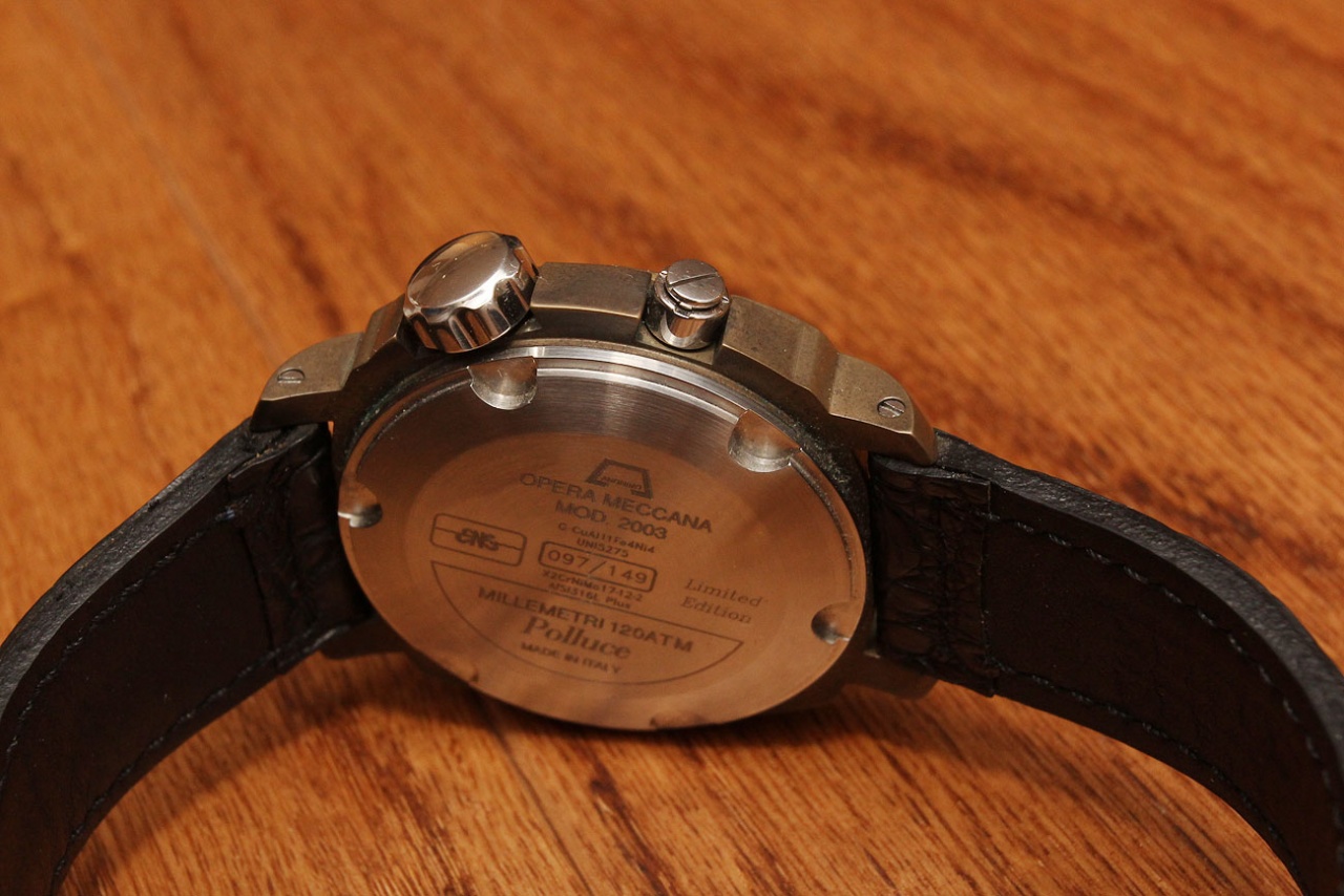 О единоутробном родстве с Panerai писать не буду, так как все это и так знают... Данная модель интересна с точки зрения того, что она создавалась как профессиональный инструмент в тесном сотрудничестве с компанией CNS (Cooperativa Nazionale Sommozzatori), основным профилем которой являются глубоководные коммерческие проекты. Важно отметить, что заявленные Anonimo 1200м. - далеко не предел, так как тесты показывали, что данная модель выдерживала 2100м.