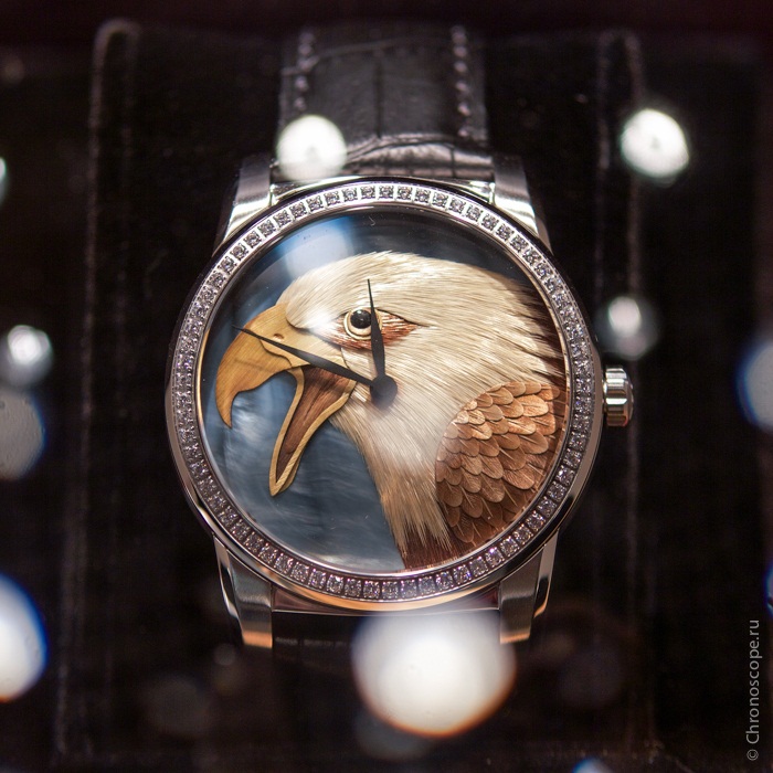 Китайская марка Longio в 2014 году сделала еще один шаг в сторону часового искусства — на этот раз она показала как ее мастера умеют работать с маркетри. Гонконгцы представили серию моделей с циферблатами, украшенными анималистическими миниатюрами из соломы. Над эстетикой корпусов компании надо еще поработать, но в целом, это дополнение к прошлогодней серии арт-часов, декорированных тончайшими лаковыми рисунками получилось удачным.