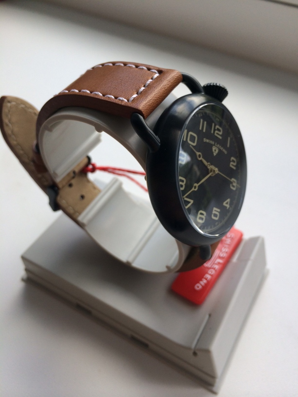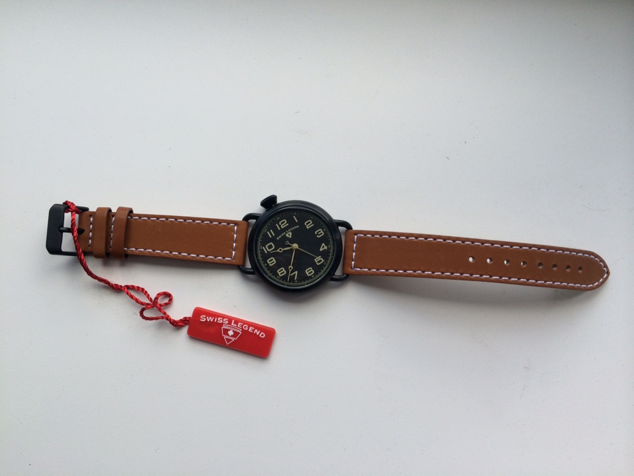 Элегантный ретро стиль со смещенной головкой. Мужские часы Swiss Legend. Black dial.