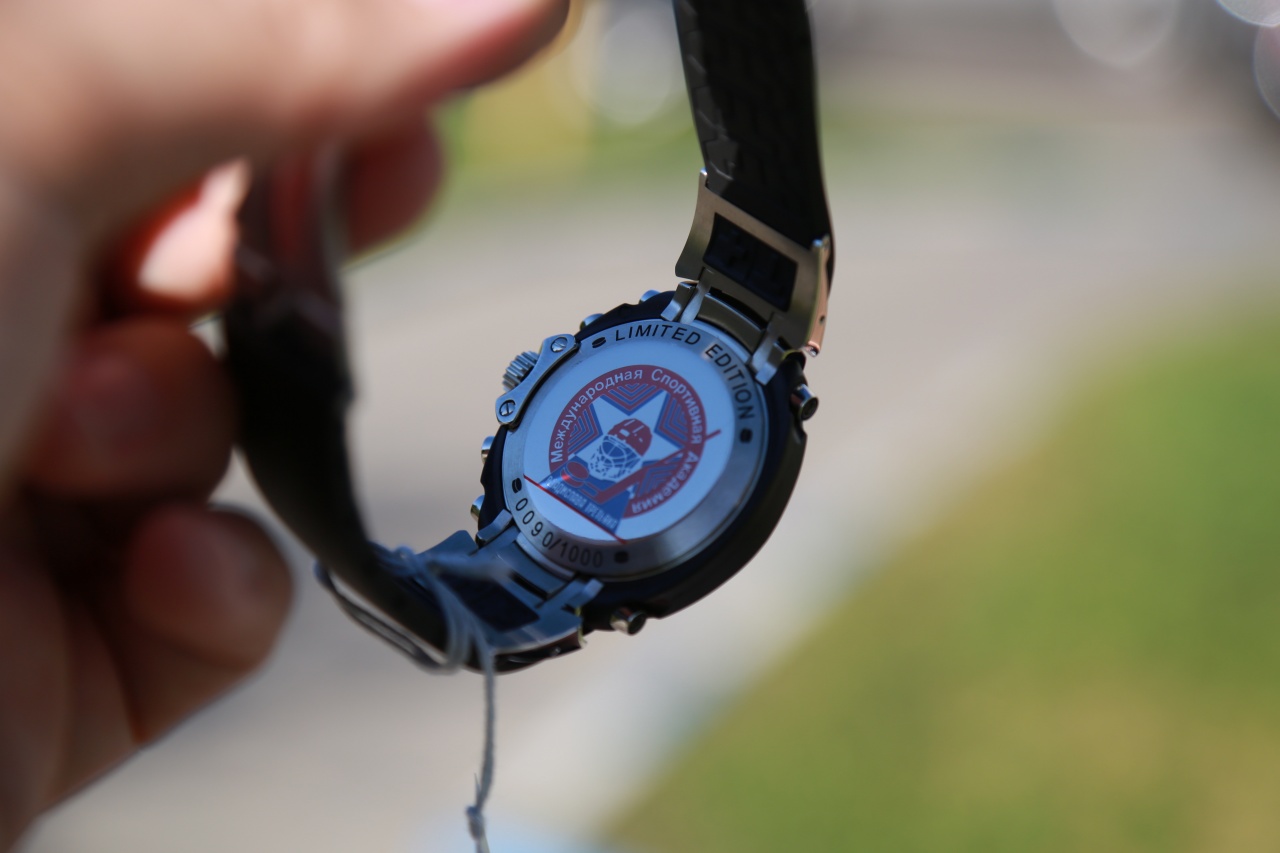 На обратной стороне часов расположена эмблема Международной спортивной академии Владислава Третьяка.