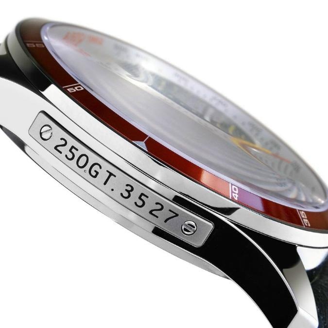 Новая лимитированная модель C70 3527 GT Chronometer от британской часовой компании Christopher Ward (производящей свои часы в Швейцарии), разработанная и выпущенная в партнерстве с ТМВ ArtmetaL, посвящена легендарному автомобилю Ferrari 250 GTO, произведенному в начале шестидесятых годов прошлого столетия. В часах C70 3527 GT Chronometer использованы частички обшивки указанного исторического автомобиля (седьмого по счету из 39, всего выпущенных, экземпляров), покинувшему фабрику Ferrari 22 мая 1962 года. Эта дата отмечана на тахиметрической шкале, а номер шасси - указан в наименовании часов и выгравирован на табличке, прикрепленной на левой стороне часового корпуса.
