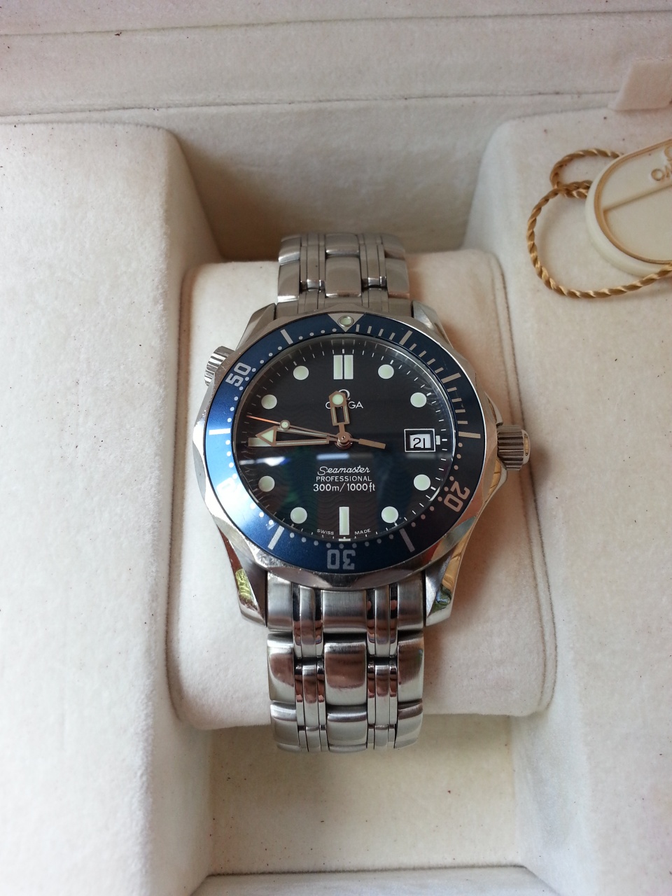 Продаю Omega Seamaster 2561.80.00 Midsize. Часы в хорошем состоянии. Имеют следы повседневного использования. На стекле имеется несколько царапинок/заминок и царапинка антиблика на 2-3 часа. Безель имеет несколько царапинок. Браслет также имеет царапинки. В целом состояние часов хорошее, царапинки в глаза не бросаются. В комплекте короб и бирка. Браслет на 17.5-18 см. Отправлю курьером с полной страховкой или любым другим способом.