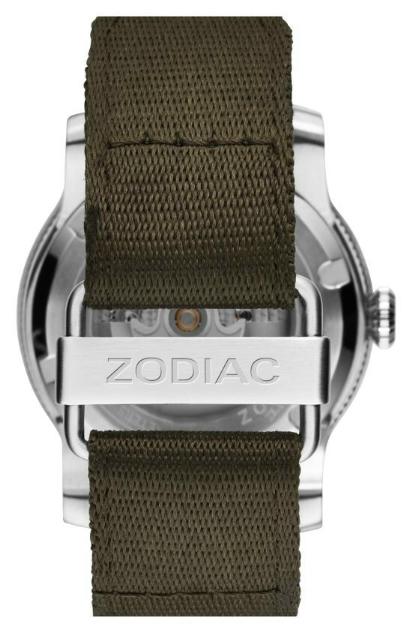 Новая модель Jet-O-Matic от швейцарской часовой компании Zodiac имеет круглый корпус, изготовленный из нержавеющей стали или из нержавеющей стали с черным ионным покрытием, диаметром 46,0 мм, толщиной 15,0 мм, водонепроницаемый до 100 метров. На торце завинчивающейся рифленой заводной головки, расположенной на 3 часах, выгравировано изображение эмблемы бренда Zodiac. Сапфировое стекло установлено на передней стороне часового корпуса и на его завинчивающейся задней крышке. Циферблат черного или оливкового цвета с арабскими цифрами, часовыми индексами покрытыми, как и скелетонизированные часовая и минутная стрелки, люминесцентным составом белого цвета.