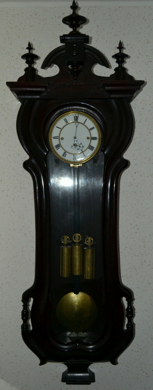 Часы настенные Венский регулятор (Австрия). Вторая половина 19 века. Редкая форма корпуса"Серпантин". Механизм с четвертным боем, с репетиром (повтор боя) , с возможным принудительным отключением боя и четвертей.