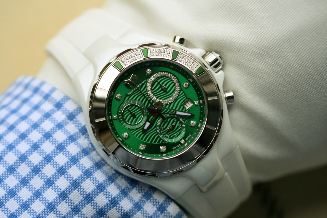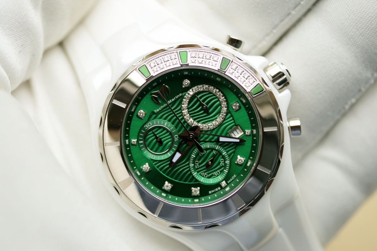 < < [женский хронограф] TECHNOMARINE CRUISE ** белая керамика ** 57 бриллиантов > >