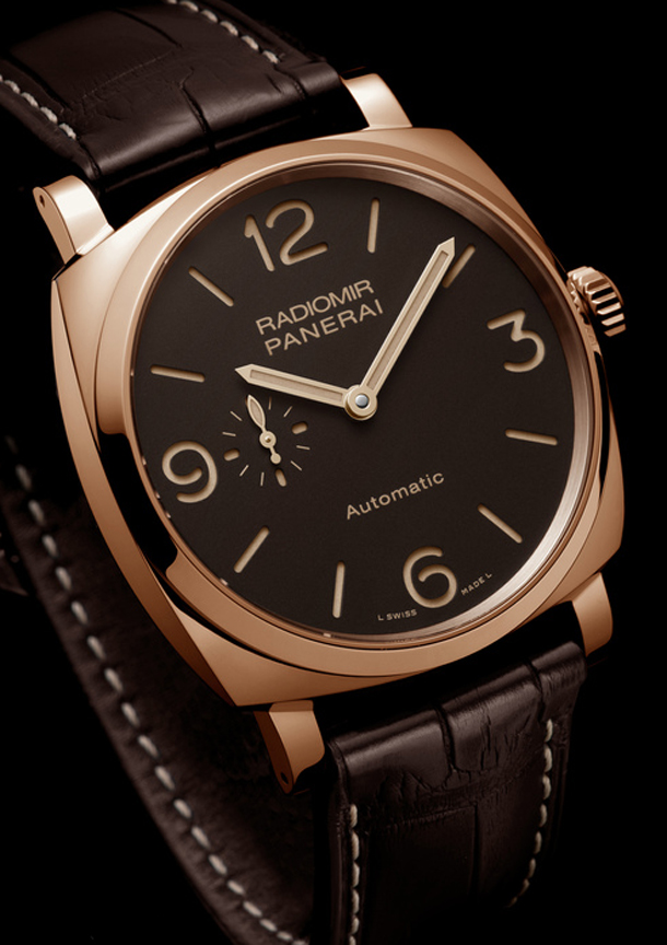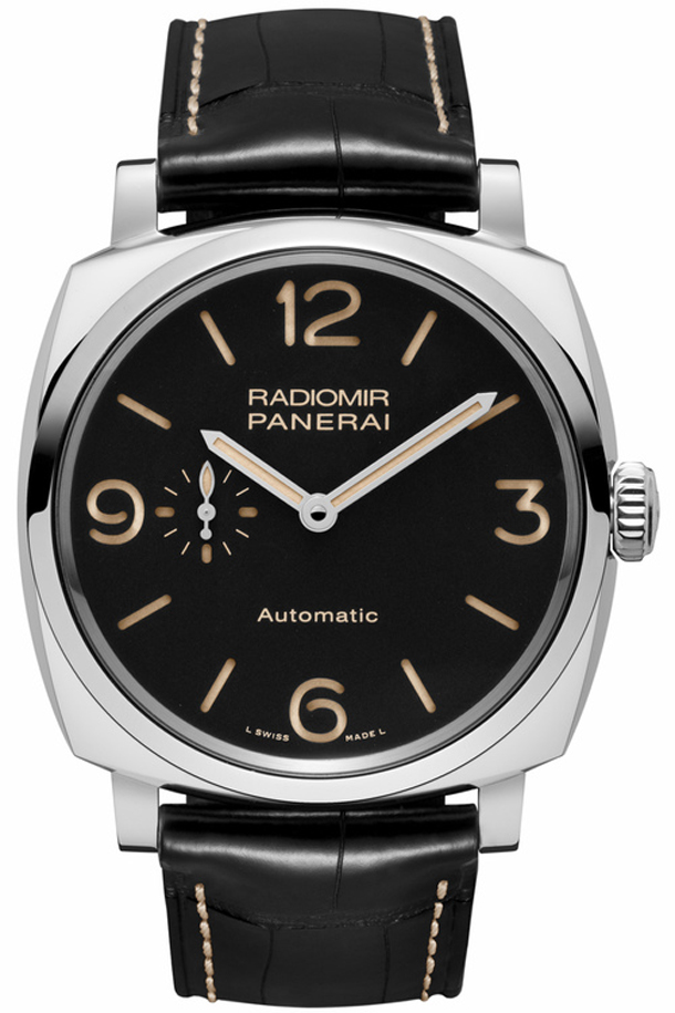 Это первые в истории часы Radiomir 1940 Automatic, оснащенные коричневым или черным ремешком из кожи аллигатора с белой строчкой.