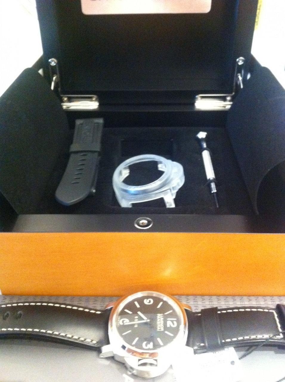 Крепление: Фирменный кожаный ремешок PANERAI с большой пряжкой из стали.
