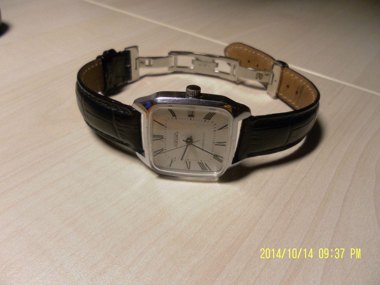 Из меня "танкист" не вышел , а вот супруга звания "танкистки" вполне достойна, так как первые часы, которые я ей подарил, были как раз такой формы . Носит уже пять лет, родной белый кожаный ремень давно потерял вид, поэтому пришлось "переодеть" в миланский, отчего часы, на мой взгляд, ничуть не проиграли
