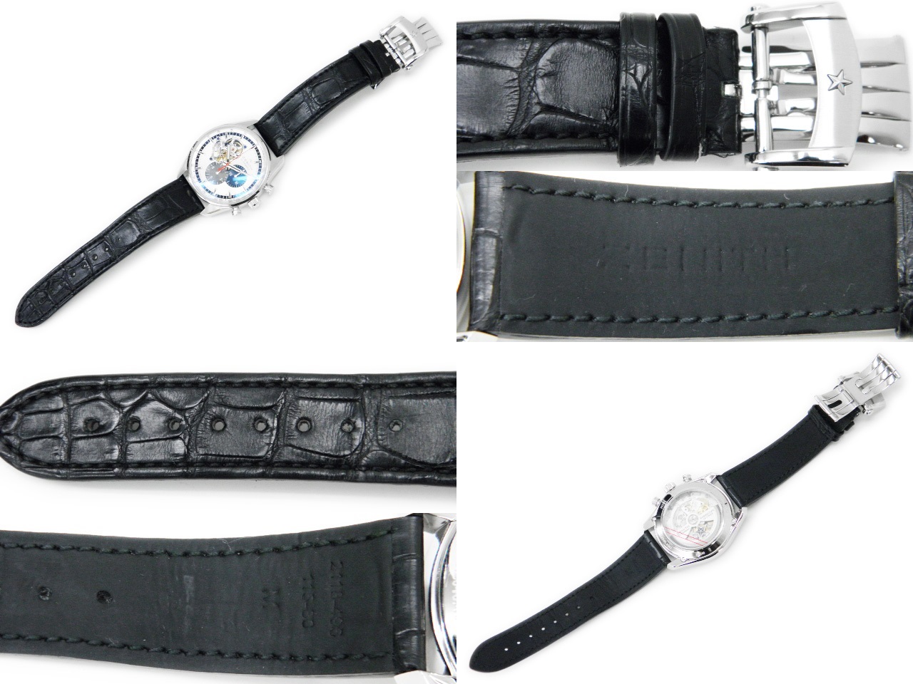РЕМЕШОК: чёрный из кожи аллигатора с подкладкой из каучука и прошитый вручную чёрной ниткой