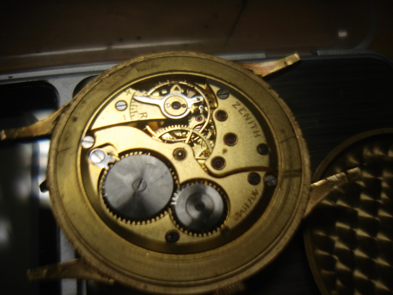 3.ZENITH золотой 750 ПРОБА(Swiss или КТО?;весь корпус золотой или только задняя крышка?),держишь ЗГ в положении завода идут,отпускаешь останавливаються.В мастерской сказали что это ZENITH JACOT,но в инете таких не нашел.Та же тема -чистить и норма.
