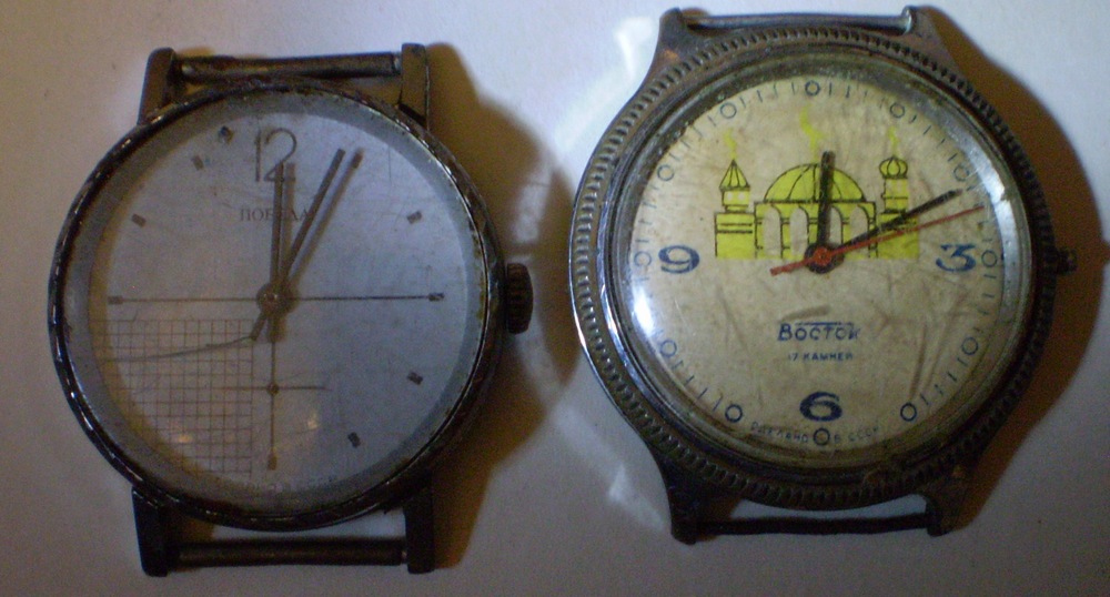 Подскажите по часам СССР: Победа, Восток 17 камней, Восток Командирские и Слава с календарем