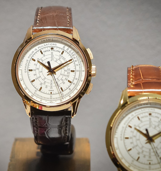 • 5975J – тираж 400 единиц – 53 000 CHF – корпус из желтого золота 18к, серебристо-опаловый циферблат с черными шкалами, блестящий коричневый ремешок из кожи аллигатора.