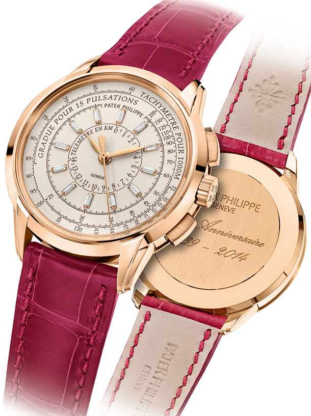 • 5975R – тираж 400 единиц – 55 000 CHF – корпус из розового золота 18к, серебристо-опаловый циферблат с черными шкалами, блестящий темно-коричневый ремешок из кожи аллигатора.