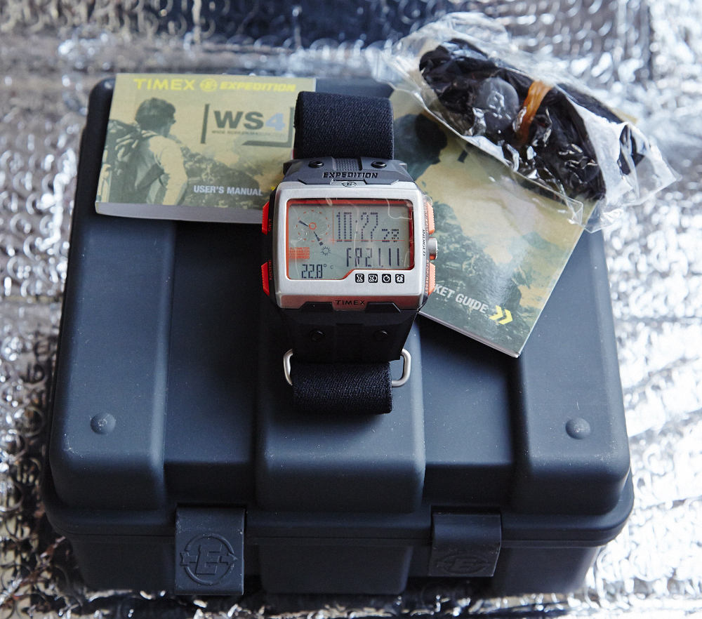Редкая по исполнению модель TIMEX EXPEDITION WS4 T49665, благодаря эластичному ремешку с бесступенчатой регулировкой эти часы можно носить как обычно, на руке, а также поверх одежды, что идеально для походов, треккинга и альпинизма, или зимой, чтобы не закатывать рукав куртки, проверяя который час. В комплекте есть шнурок, чтобы носить часы на шее как секундомер.