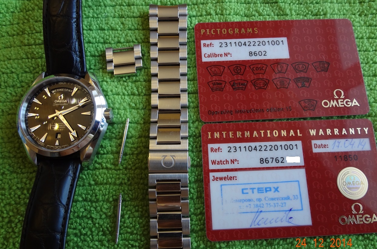 К часам докуплен неоригинальный ремень из кожи аллигатора и оригинальная застежка, (браслет, доп звенья и шпильки конечно же в комплекте) на ремне надевал раз 5 не больше (форма от подушки в коробке