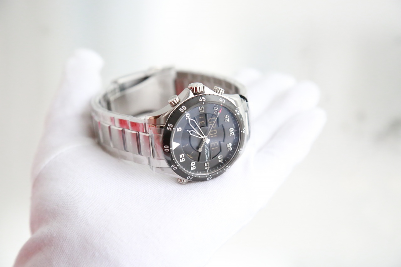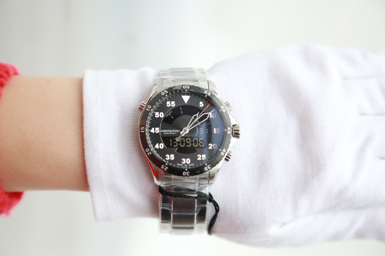 Сложные, многофункциональные часы Khaki FLIGHT TIMER с их цифровым и аналоговым дисплеями - новая веха в истории пилотских часов. В них инкорпорирована лётная книжка лётчика, рассчитанная на запись информации по 20 полетам и 99 приземлениям. Часы обладают целым спектром практических функций, в числе которых два часовых пояса, время по UTC (Всемирное координированное время), а также будильник, хронограф, обратный отсчет, регистрация времени полета, указание температуры по МСА (Международная стандартная атмосфера) и вечный календарь.