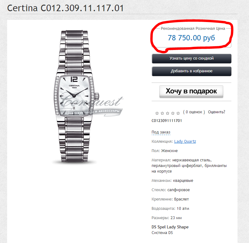 Дополнительное описание: http://www.conquest-watches.ru/catal...certina/50763/