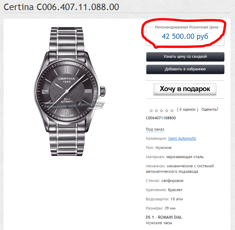 CERTINA DS-1 Automatic C0064071108800 Браслете / Серый цифер / d=39mm