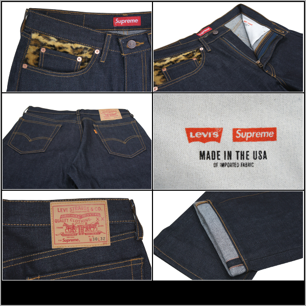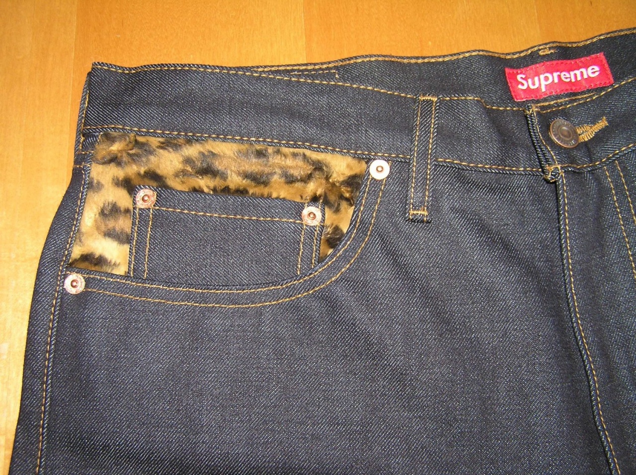 Джинсы редкие, из ограниченной леопардовой серии премиум коллекции 2012г - Supreme X Levi's Supreme Selvedge Denim Orange Tag, Made in USA, San Francisco, California.