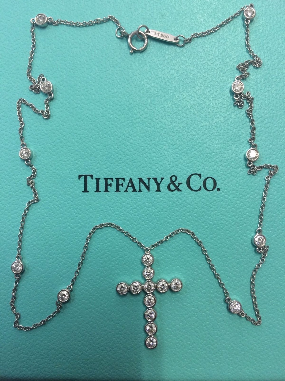 Цепочка с крестиком Tiffany *1.26 ct* в платине <SUPER SALE>