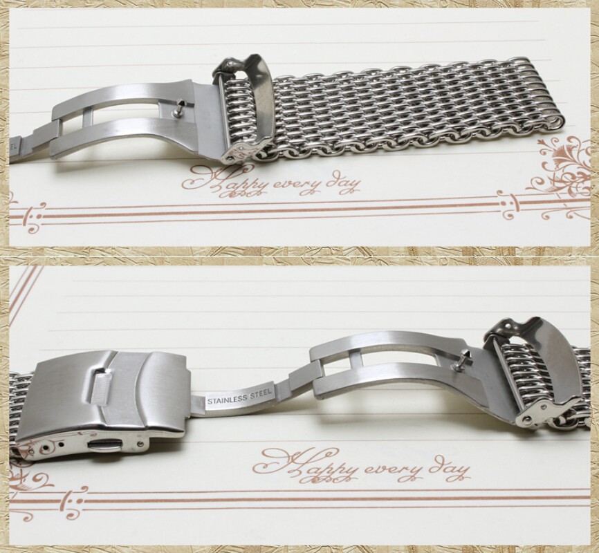 Приехал ко мне mesh браслет 20 мм. На двойной дайверской застежке, но оказался коротковат((. По сему, нужен либо удлинитель для застежки, либо другая застежка с более длинным рядом регулировок (у меня три положения) Ширина самого браслета 20 мм толщина 4 мм. Может у кого есть или знаете где приобрести (про eBay в курсе), либо что-то посоветуйте. Спасибо.