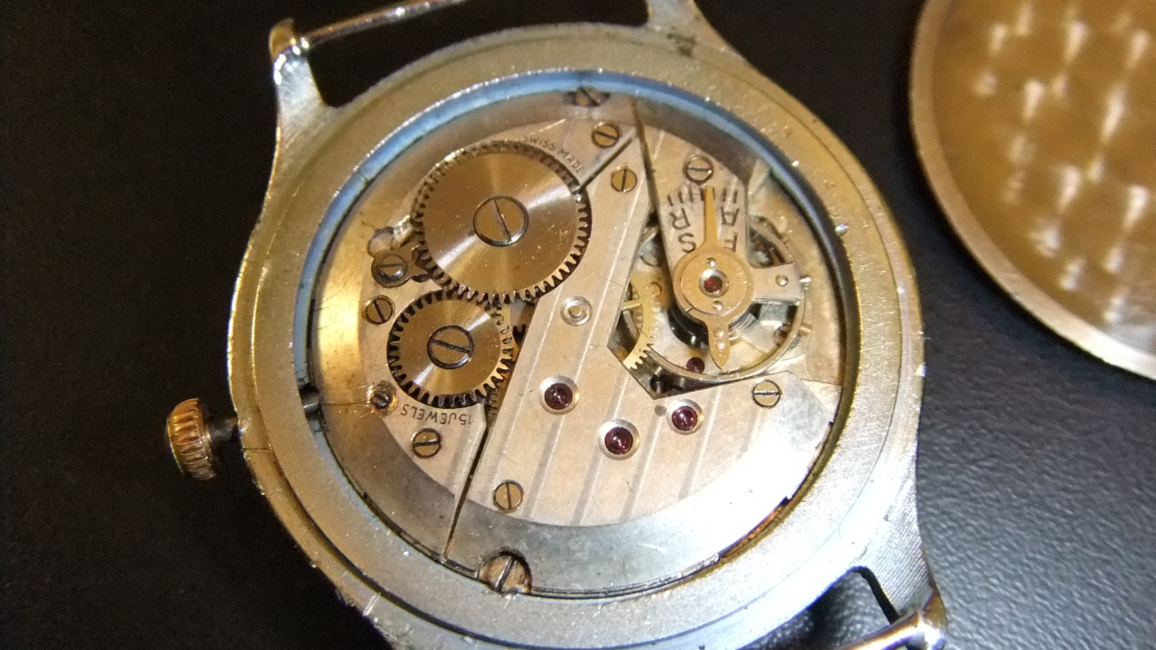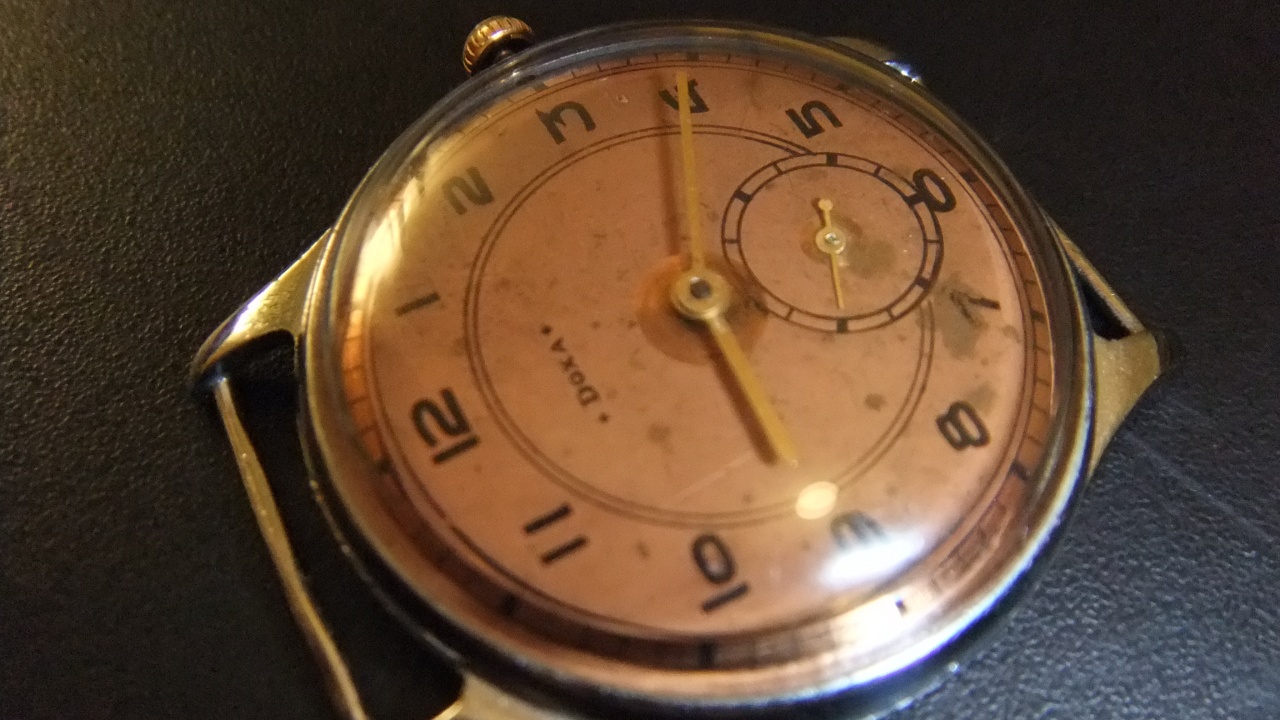 Состояние - на фото. Цифер, на мой взгляд, оставляет желать лучшего, может быть для своих лет еще более-менее. Корпус в неплохом состоянии, ушки цельные. Механизм хороший, на 15 камнях, ходят точно.
