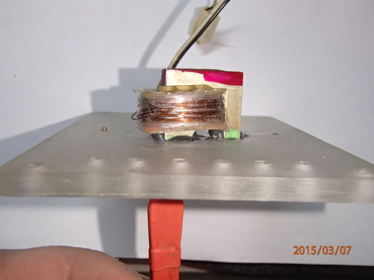 Трансформатор сделан из старой трансформаторной зарядки от Нокии, у нее Ш образный сердечник у которого нужно отрубить одну часть, чтоб он стал П образным. На одно плечо наматывается 150 витков провода.