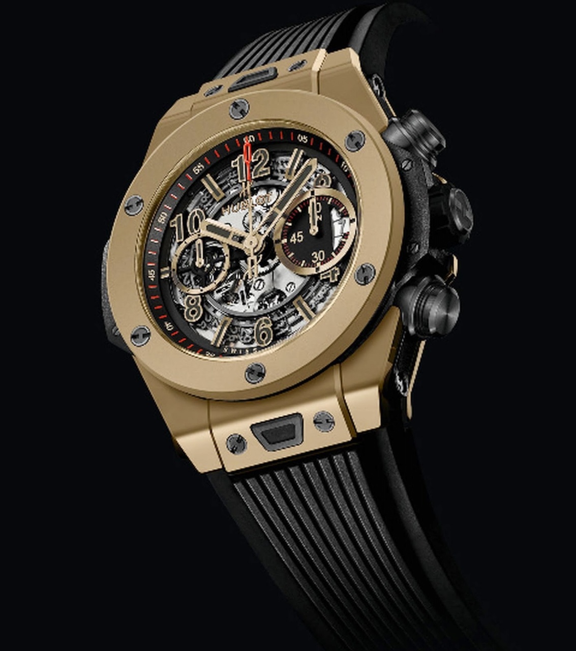 Швейцарская часовая компания Hublot, в честь десятилетнего юбилея своей знаменитой коллекции Hublot Big Bang, выпустила новую лимитированную модель Big Bang Unico Full Magic Gold (Ref. 411.MX.1138.RX). Она будет официально представлена на крупнейшей в мире международной часовой выставке Baselworld-2015, которая состоится в Базеле (Швейцария) в период с 19 по 26 марта текущего года. Основной особенностью модели является то, что ее корпус изготовлен из запатентованного сплава "Magic Gold", устойчивого к царапинам (твердость его по шкале Виккерса достигает 1000, а для сравнения - этот показатель у обычного 18-каратного золота составляет 400). Этот уникальный золотой сплав был разработан компанией Hublot в сотрудничестве с институтом EPFL (Швейцарский федеральный институт технологий) и был представлен еще 2011 году (подробнее об этом сплаве см. на нашем форуме