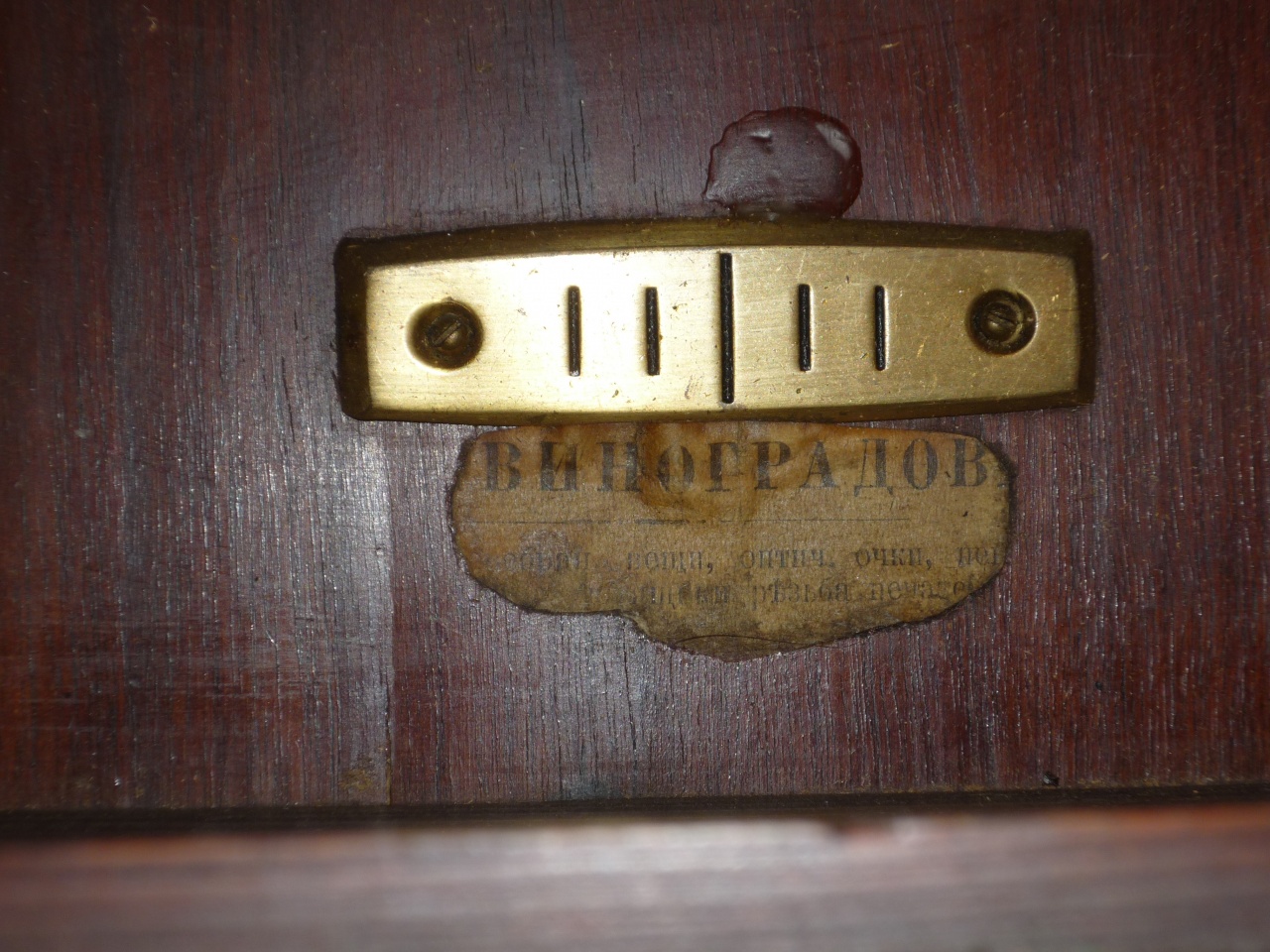 Добрый день всем.Имеются часы. Производство "HAU-HAC". На задней стенке есть даже штамп. Но вопрос о другом. Внутри корпуса, под вектором маятника, есть остатки бумажной наклейки с надписью "Виноградов" и что там о своей продукции. Я нашел из ТД того времени только Виноградовых-суконо-промышленников. Может быть у кого есть информация о других Виноградовых того времени, продававших часы. И еще вопрос. Значит продукцию " HAU" ввозили в Россию в начале 20 века?. Заранее спасибо. С уважением