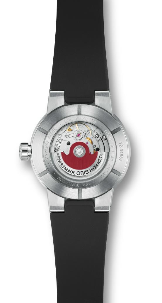 Модель оснащена швейцарским автоматическим механизмом Oris 735 (базовый калибр Sellita SW220), на 26 камнях, с балансовой частотой 28800 полуколебаний в час (4 гц), 38-часовым запасом хода, функциями индикации часов, минут, секунд (посредством соответствующих центральных стрелок), дня недели и даты (посредством соответствующих буквенного и цифрового указателей в прямоугольной и квадратной апертурах, расположенных на 3 часах). Ротор автоподзавода персонализирован Oris и традиционно окрашен в красный цвет.