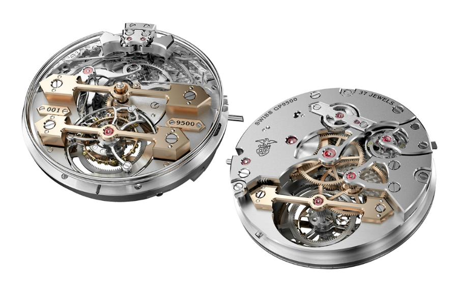 Модель оснащена мануфактурным швейцарским механизмом с ручным заводом Girard-Perregaux GP09500-0002, на 37 камнях, с балансовой частотой 21600 полуколебаний в час (3 гц), 58-часовым запасом хода, функциями индикации часов, минут (посредством соответствующих центральных стрелок), а также с турбийоном, каретка которого расположена на 6 часах и с минутным репетиром. Калибр отрегулирован, отделан и декорирован в соответствии с критериями Haute Horlogerie.