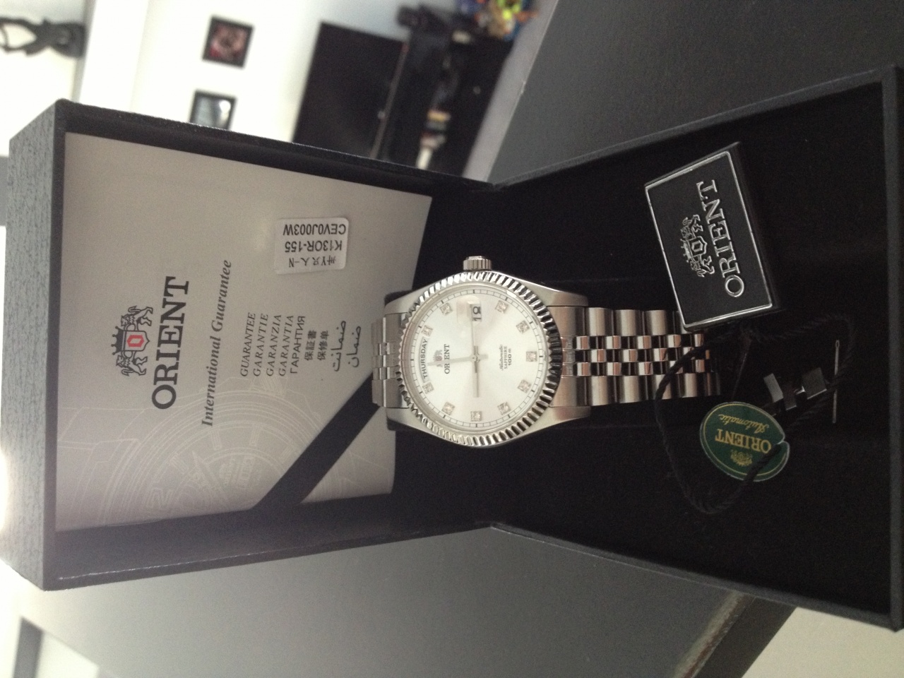 Добрый день! Товарищи, случайно просматривал форум и наткнулся на довольно редкий хомажик от Ориент CEV0J003W - White Dial. Было бы очень интересно услышать мнение форумчан, особенно тех кто владеет этой моделью. Как мне кажется очень неплохая модель, обладает своим лоском и красотой, несмотря на то что дизайн скопирован у Ролекс. Хотелось бы такую модельку с синим цифером, да уже не достать. Скажите, кто знает не мелковаты ли будут часы для запястья 17.3-17.8 и как они смотрятся в жизни, не пахнет ли от них дешивизной, качество исполнения и обрабботки стали на высоте? С уважением, Роман.