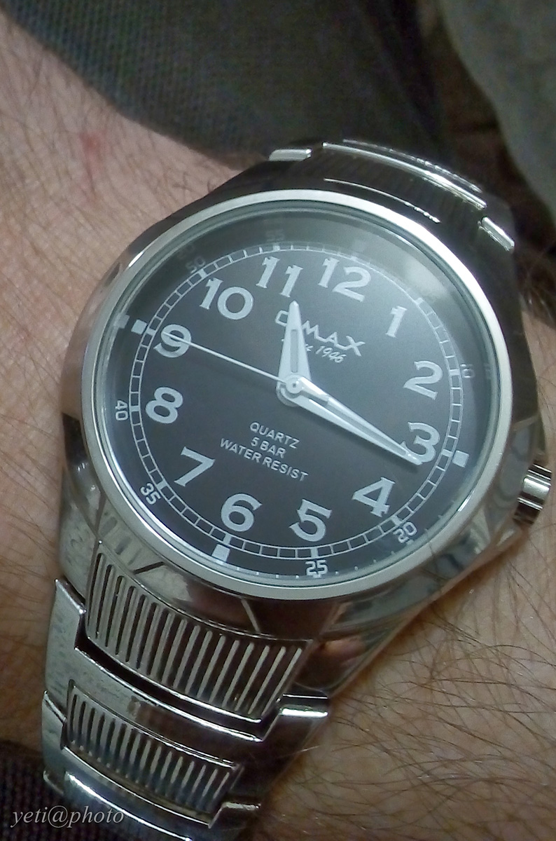 Сначала часы показались какими-то негармоничными. Но за вечер присмотрелся к ним.. Увесистый корпус и браслет, будучи хорошо подогнанными по охвату руки, очень комфортно сели на запястье. Цифер очень контрастный и читаемый, даже к стрелкам уже привык, что-то в их массивности есть от новых модных веяний. В общем, несмотря на мои "электронно-цифровые" пристрастия последних месяцев данный Omax будет неплохой альтернативой моим привычным часам. Тем более, что подобный формфактор часов я еще как-то и не носил. Глядишь, понравится, и уже со временем куплю себе что-то в таком же духе, но посолиднее - типа Casio Lineage.