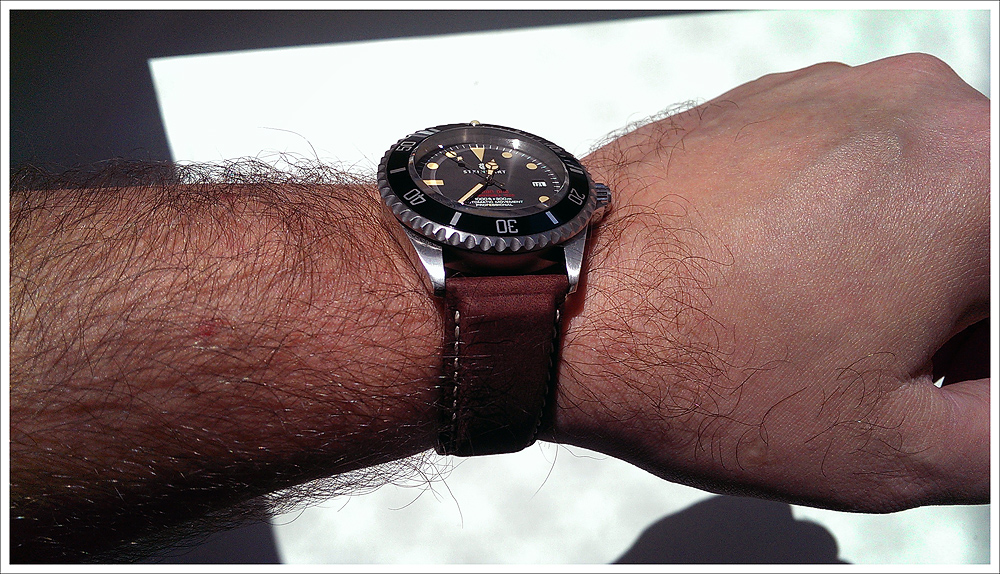 Охряно-желтые метки на коричнево-фиолетовом цифере уносят куда-то в семидесятые, в пожелтевшие родительские фотографии... Купольный сапфир, выпуклая задняя крышка, некрупный циферблат - всё это VINTAGE в полной мере.