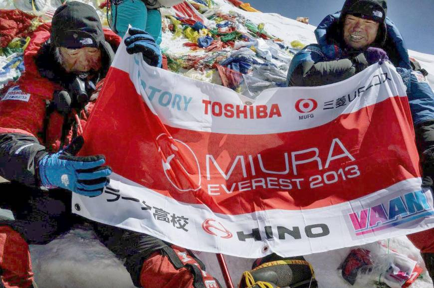 An 80-year-old Japanese man who has had four heart operations in recent years became the oldest person to climb to the top of Mount Everest