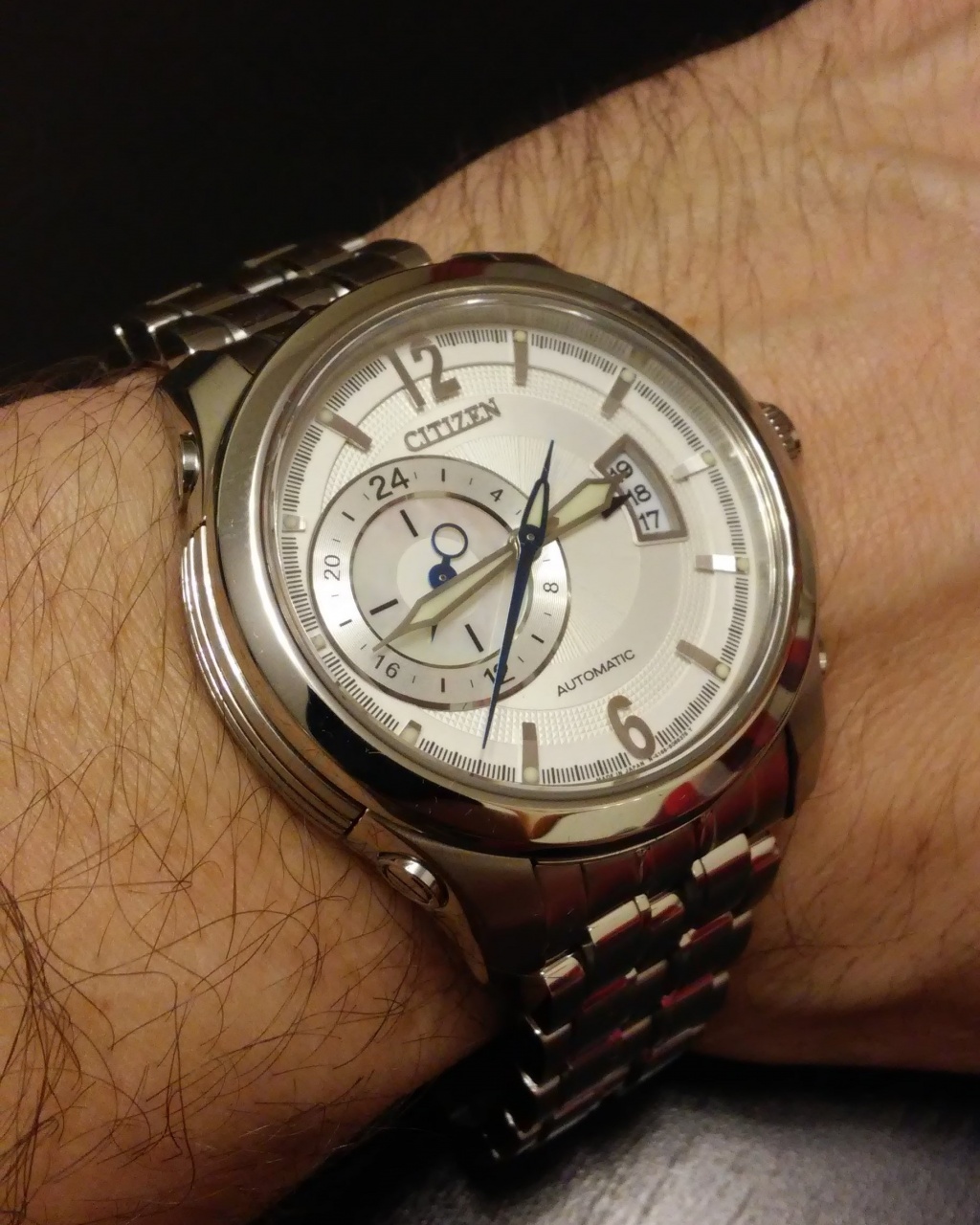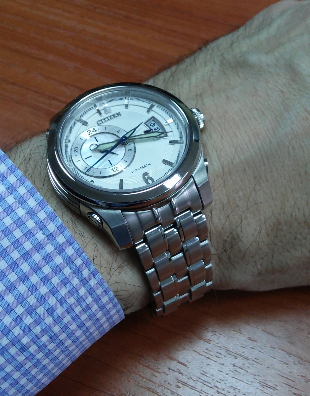 На руке (у меня диаметр запястья 16-17 см, для этого снял 2,5 деления браслета) часы сидят очень эргономично и очень удобны для носки. Подходят как под костюмный вариант, так и для кэжуал и для летней формы одежды при ношении под рубашку с коротким рукавом.
