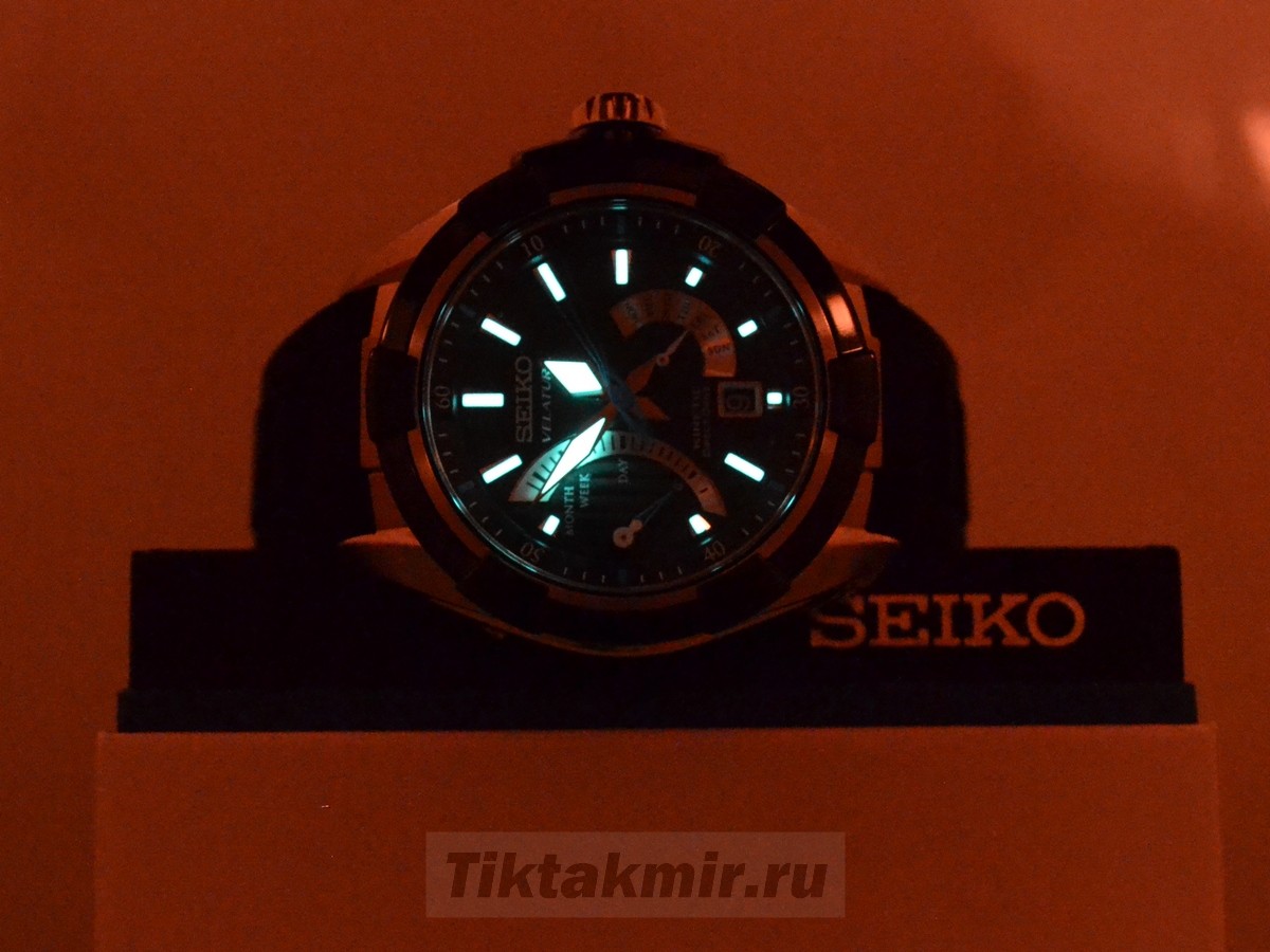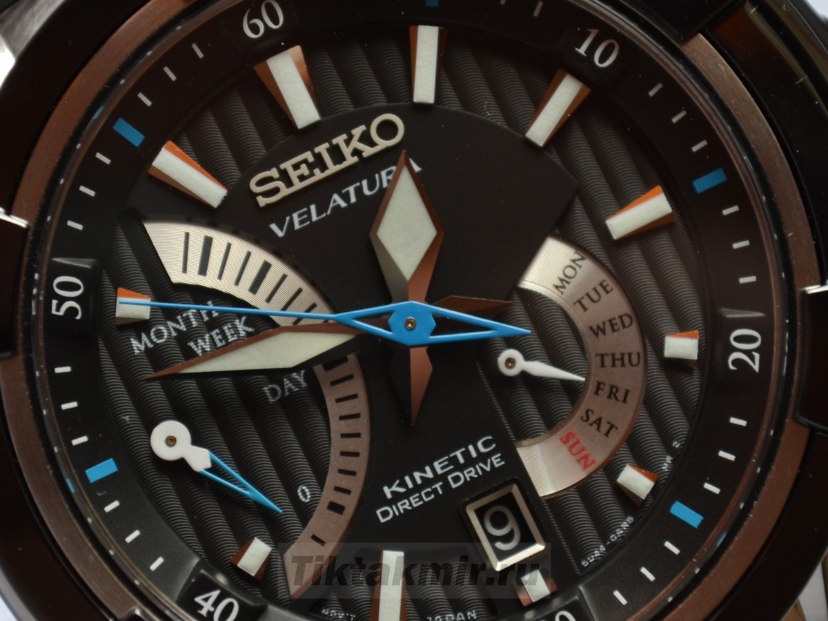 Индикатор на 9 часах показывает уровень заряда аккумулятора при носке часов, при вращении заводной головки показывает на количество вырабатываемой кинетической энергии.