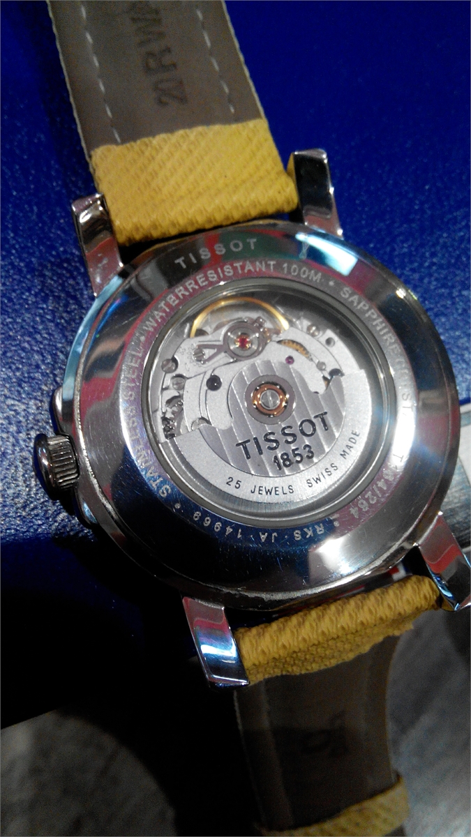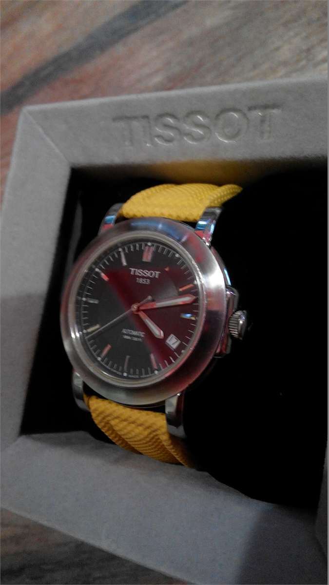 Плоский устойчивый к царапинам сапфир с двух сторон, без царапин. Черный циферблат в совершенно отличном состоянии, окно даты в положении "4 часа", подпись " TISSOT 1853 Automatic 100m/330ft Swiss Made".