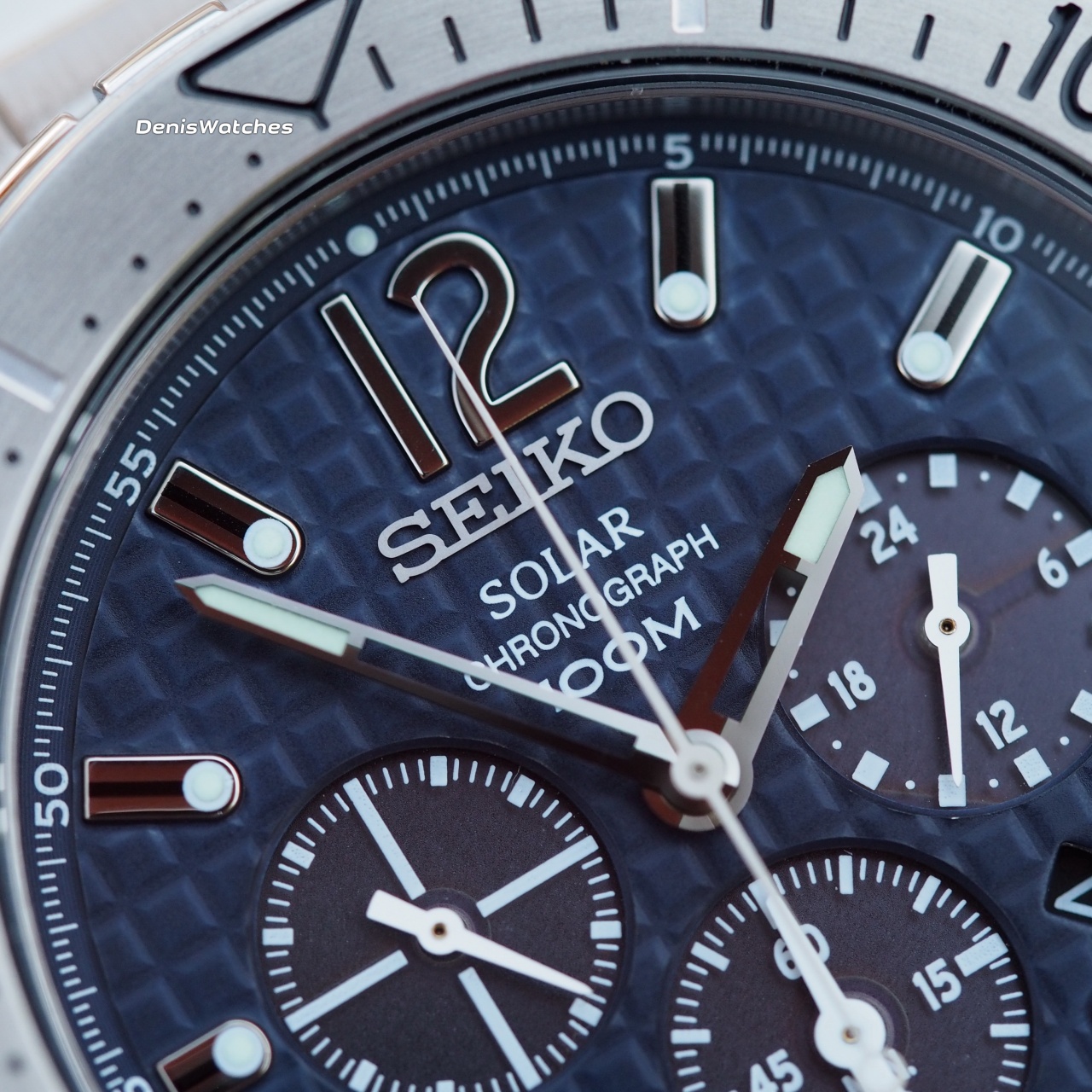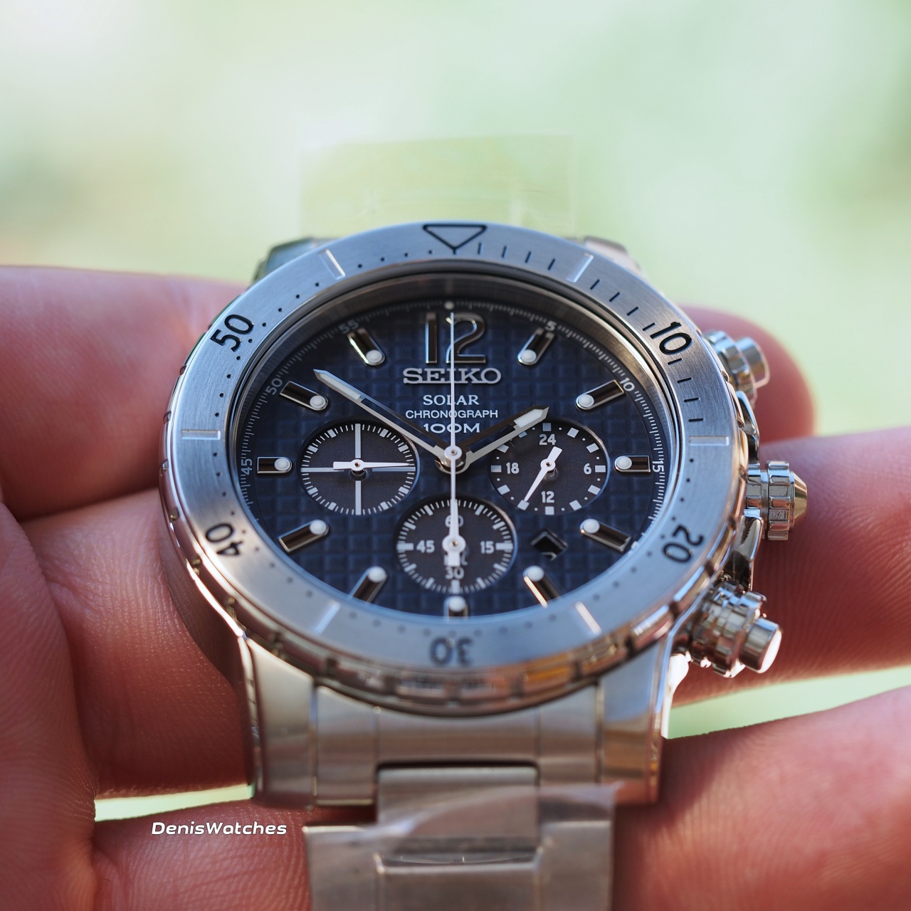 Отличный синий хронограф-SOLAR с оригинальным квадратным узором на циферблате