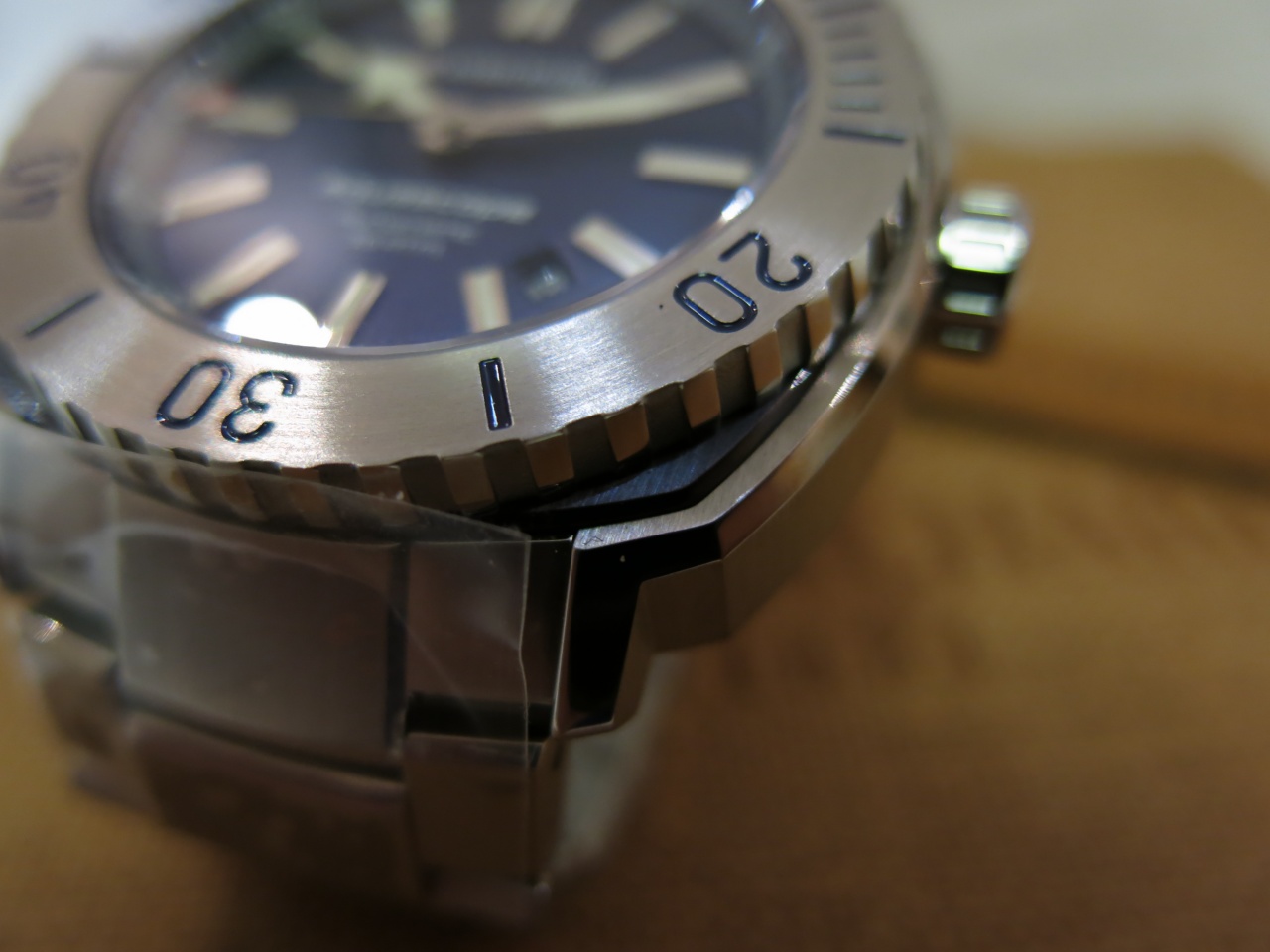 Безель дайверский, с разметкой, сатинированный, односторонний, с хорошо чувствующимися щелчками.