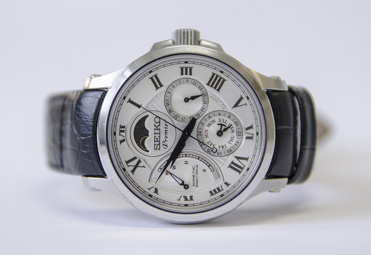 Коллекция Premier. Высокотехнологичный мануфактурный автокварцевый механизм Seiko Kinetic Direct Drive Moon Phase 5D88.
