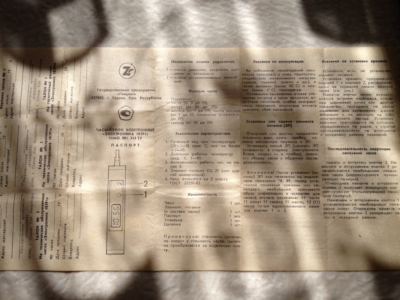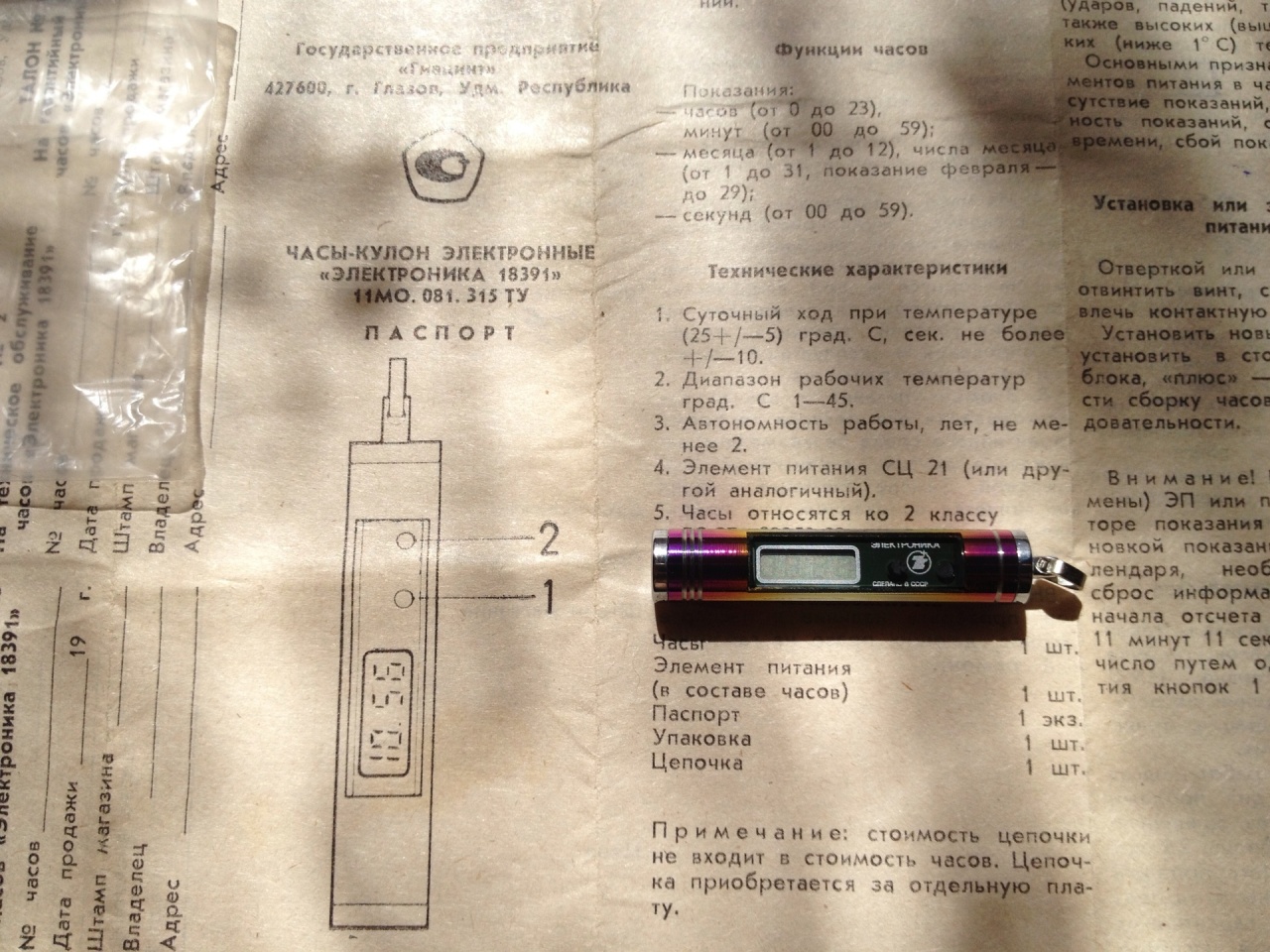 ЭЛЕКТРОНИКА 18391-ЧАСЫ КУЛОН